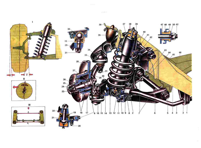 42. Ось верхнего рычага подвески;